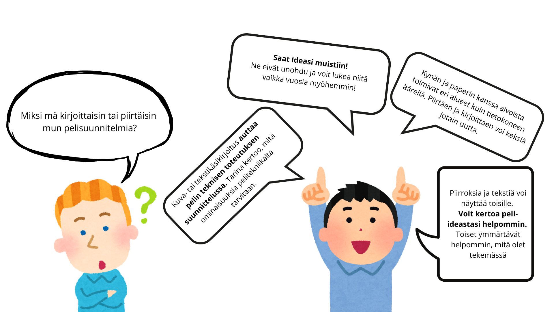 - Ideoita on helpompi kertoa toisille, kun voi näyttää tekstiä ja/tai kuvia.